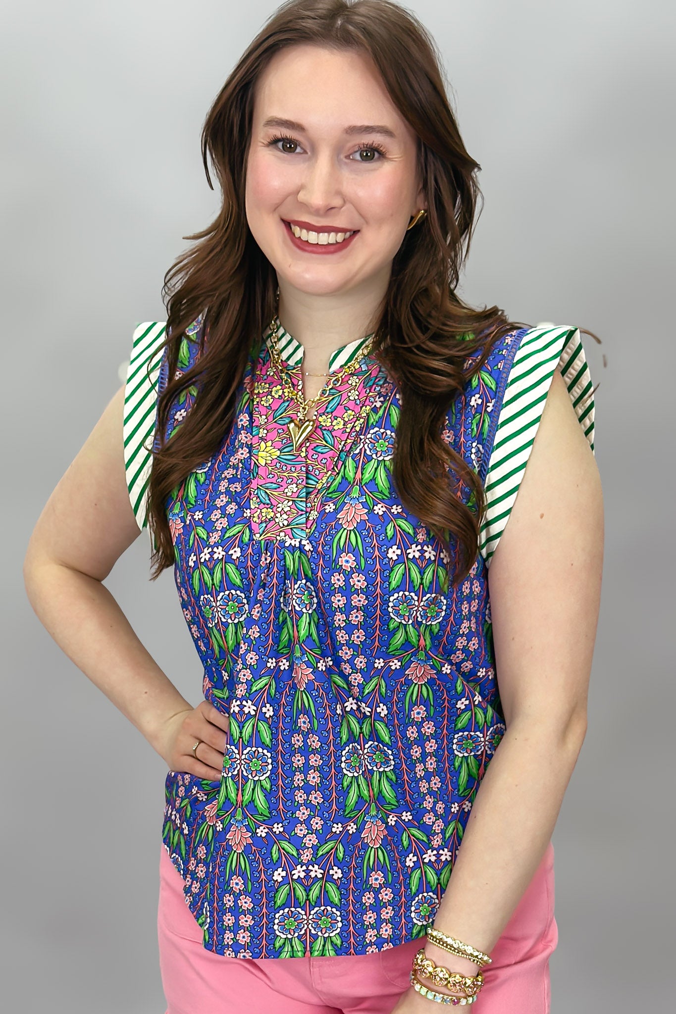 Float On Striped V-neck Top, Blue