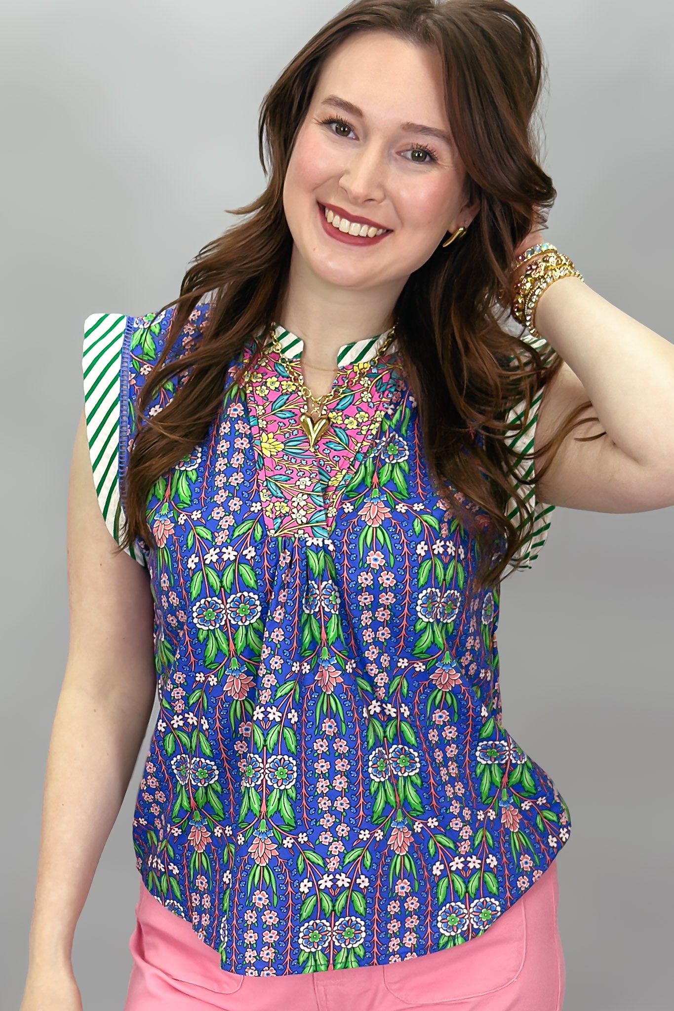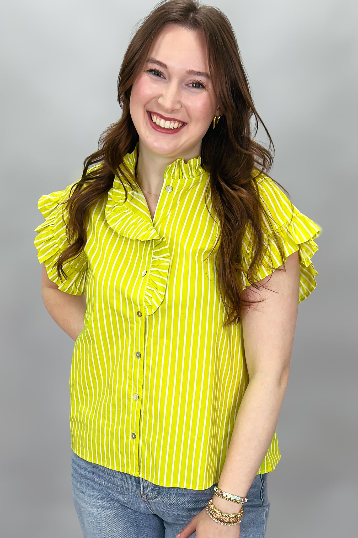 Someday Stripe Ruffle Neck Top, Blue