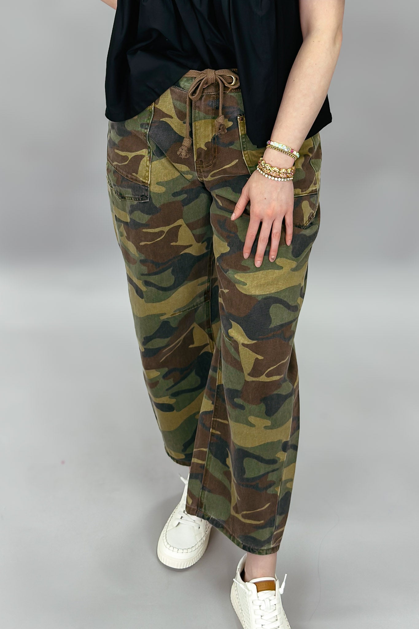 Mess It Up Mid Rise Cropped Relaxed Fit Pants, Camo