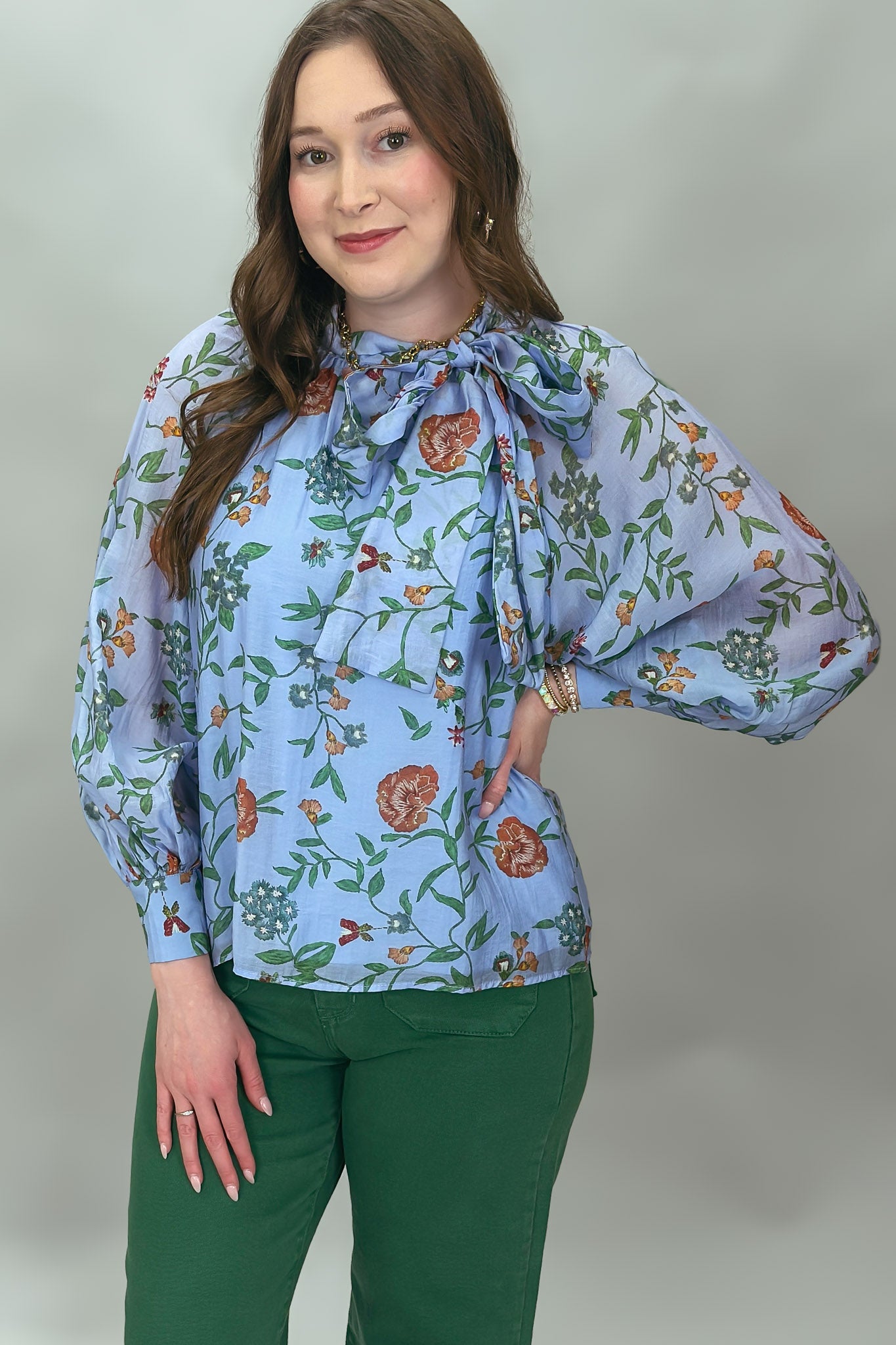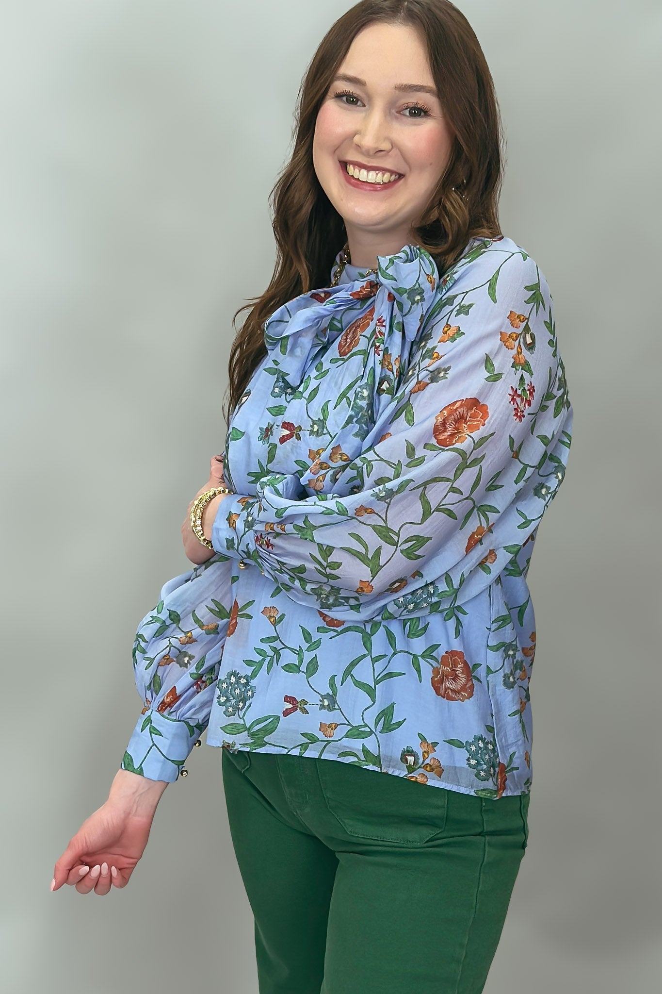 Seeing Blind Button-up Pearl Embellish Top, Blue