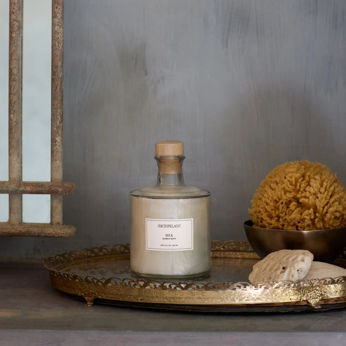 Relax and rejuvenate with our Milk Bubble Bath. Dried Milk Solids and natural proteins are combined in a luxurious bubble bath. Use often to help soothe and restore the skin. Apply a generous amount to warm running water to create a luxurious, relaxing and restorative bath experience. Soy, vetiver, and wild oats.
