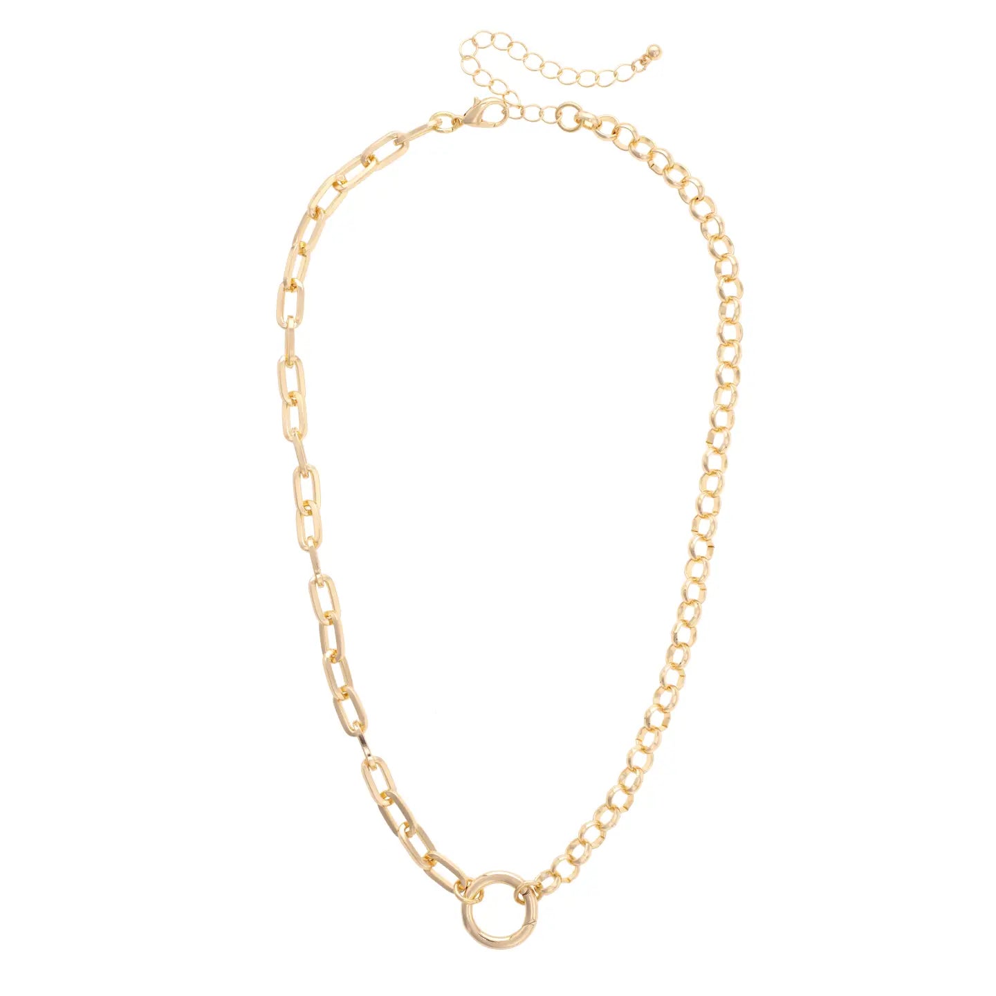 With contrasting links for a bold split design, this chain makes a modern statement. DETAILS 18K Shiny Gold Plating 18" Adjustable