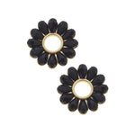 Earring, Faye Glass Flower, Black
