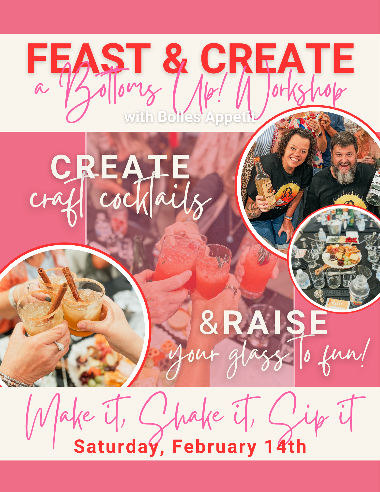 Back by popular demand, Bottoms Up! is returning to our space in store at FEAST for another hands-on cocktail class, this time with a playful Valentine twist. Whether youāre coming with a friend, your favorite person, or flying solo, this night is all about good drinks, good company, and a great time!