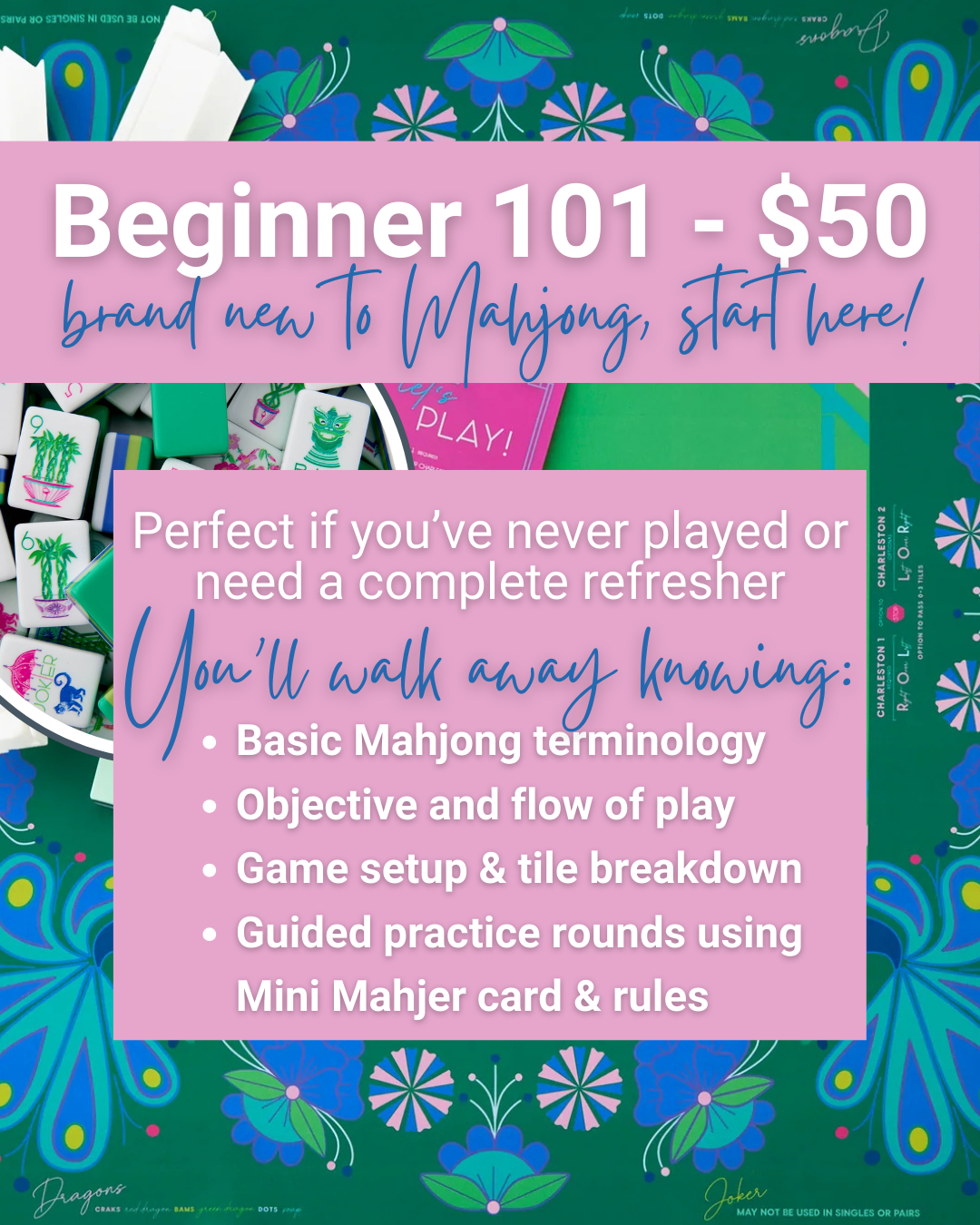 Whether you're learning to call your first "Mahjong!" or just here for the laughs and snacks—we promise you'll leave with new skills, new friends and a newfound obsession!