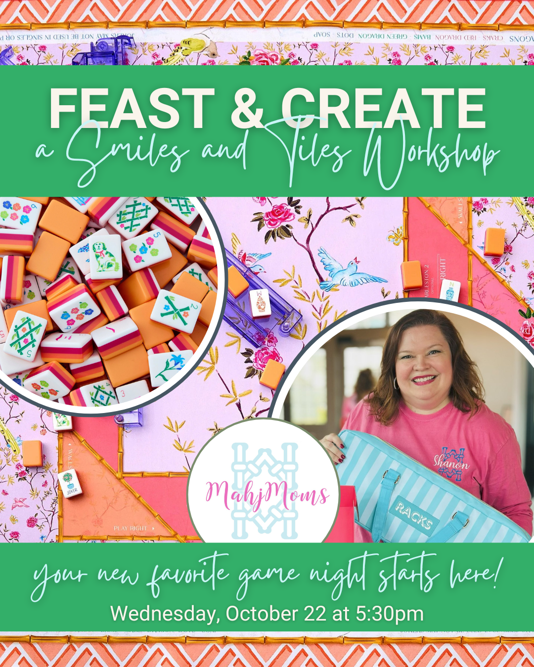 FEAST & CREATE: A Smiles & Tiles Mahjong Workshop 10/22