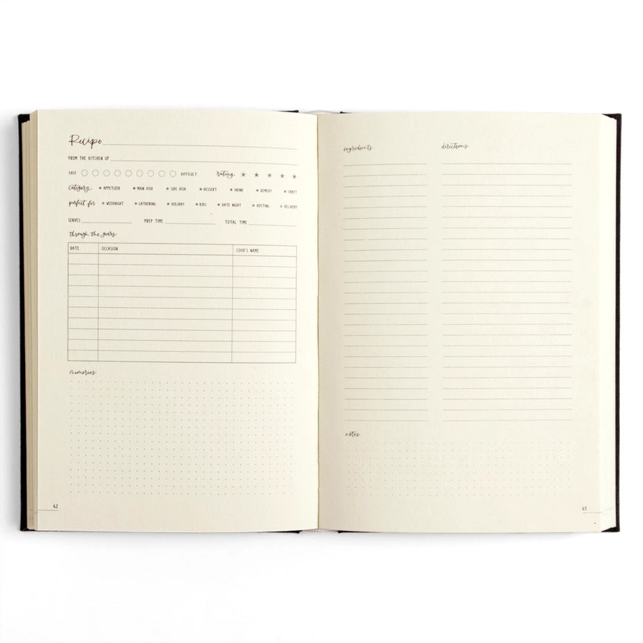 Capture and immortalize family recipes and culinary masterpieces in the Navy Gingham Heirloom Recipe Book. This timeless gift is the ultimate choice for preserving cherished recipes and passing them down through generations. Perfect for those who hold homemade meals and heirloom cookbooks dear to their hearts, give the gift of tradition with this invaluable treasure. Book features sections for: Table of contents, 58 recipe pages with sections for: Ingredients, Instructions, Memories, Through the Years, Notes and more. Includes a special section to honor the cooks who have influenced our kitchens.