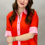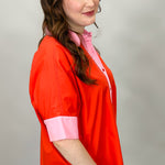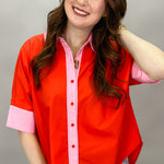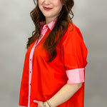 I Feel Fine Two-tone Collared Button Up Top, Red