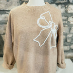 Oatmeal Embroidered Bow Knit Sweater