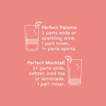 Bright, tart grapefruit combines with fresh lime to make an incredible mixer with a bright pink color that just pops on the shelves. This mixer makes it quick and easy to make one of the most popular summer-time cocktails, the Paloma. Just add 1.5-2 ounces of this natural mixer to tequila or mezcal and seltzer. It's as easy as that.