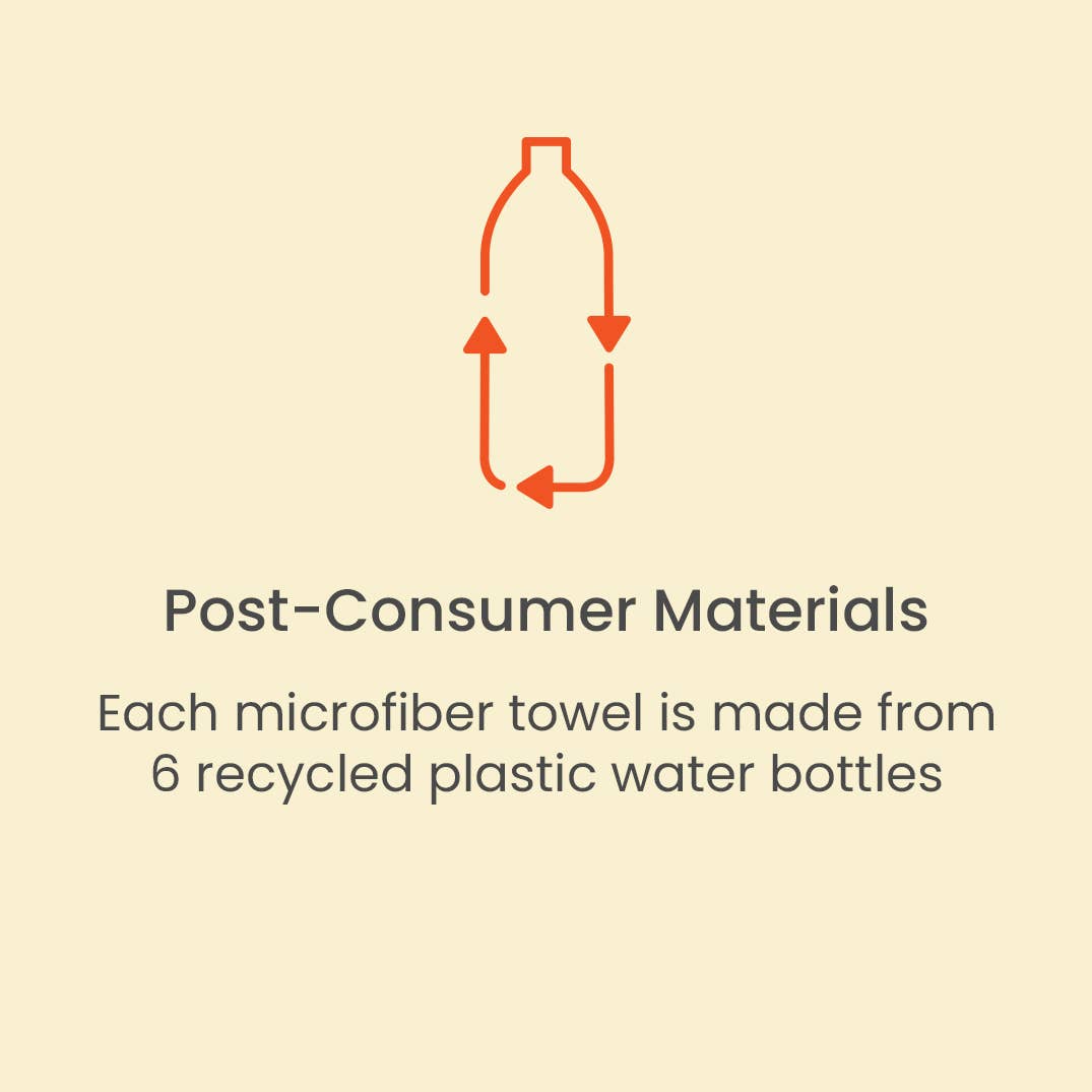 - Post-Consumer Materials - Each towel is made from 6 recycled plastic water bottles