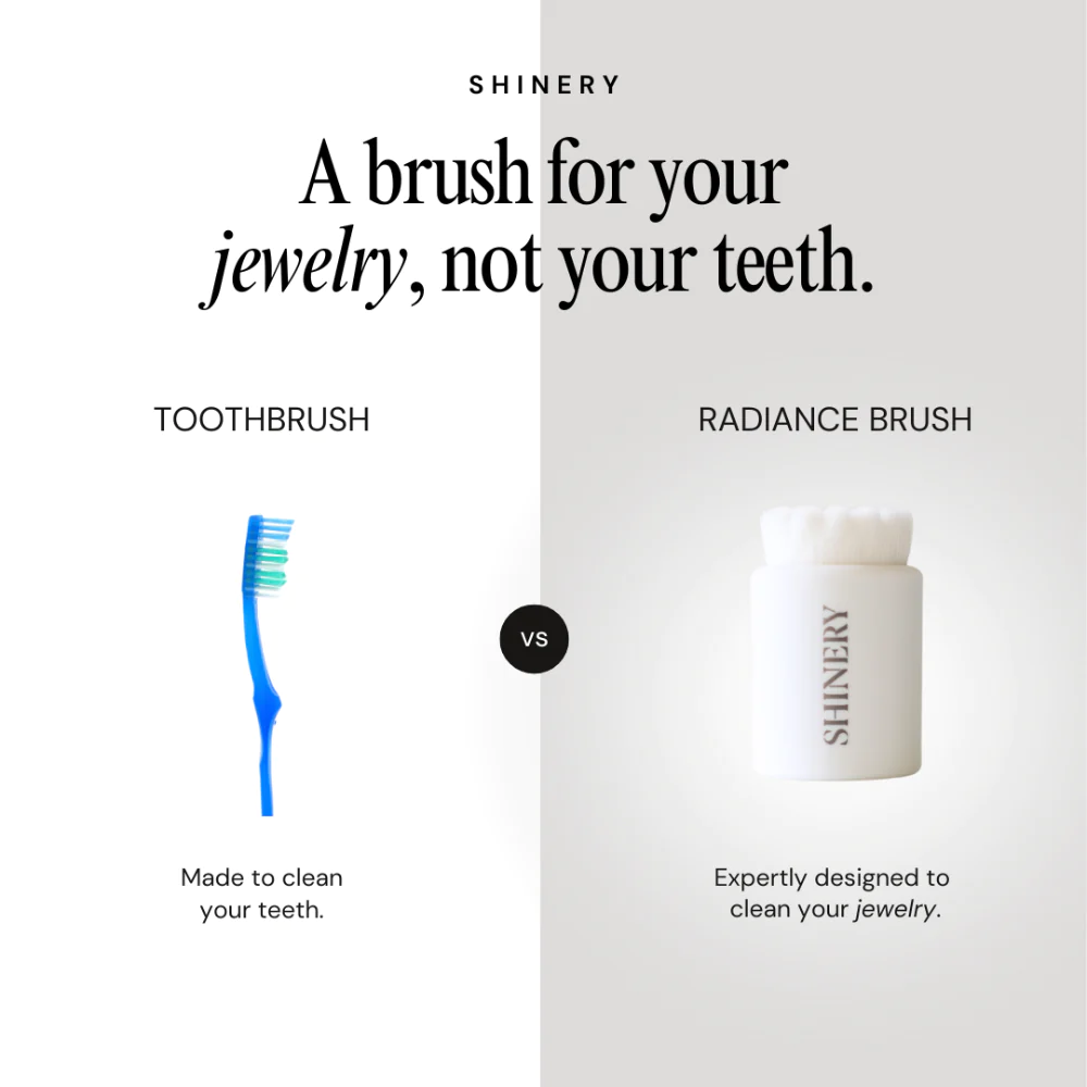 Introducing the must-have accessory for jewelry enthusiasts - the Radiance Brush! Say goodbye to your old toothbrush and elevate your jewelry's care with its advanced design and carefully crafted bristles. Paired with the luxurious Radiance Wash, it's the perfect tool for keeping your precious pieces sparkling. And with a soft, comfortable grip, cleaning your jewelry and watches has never been more effective and enjoyable. So go ahead, toss that old toothbrush and embrace the Radiance Brush - your jewelry will thank you!