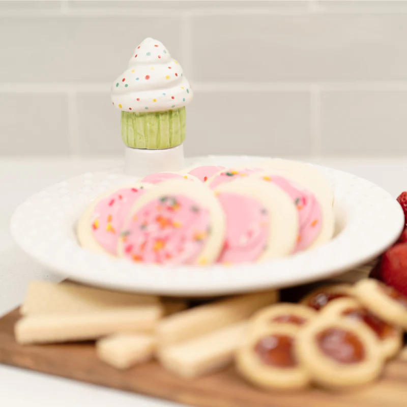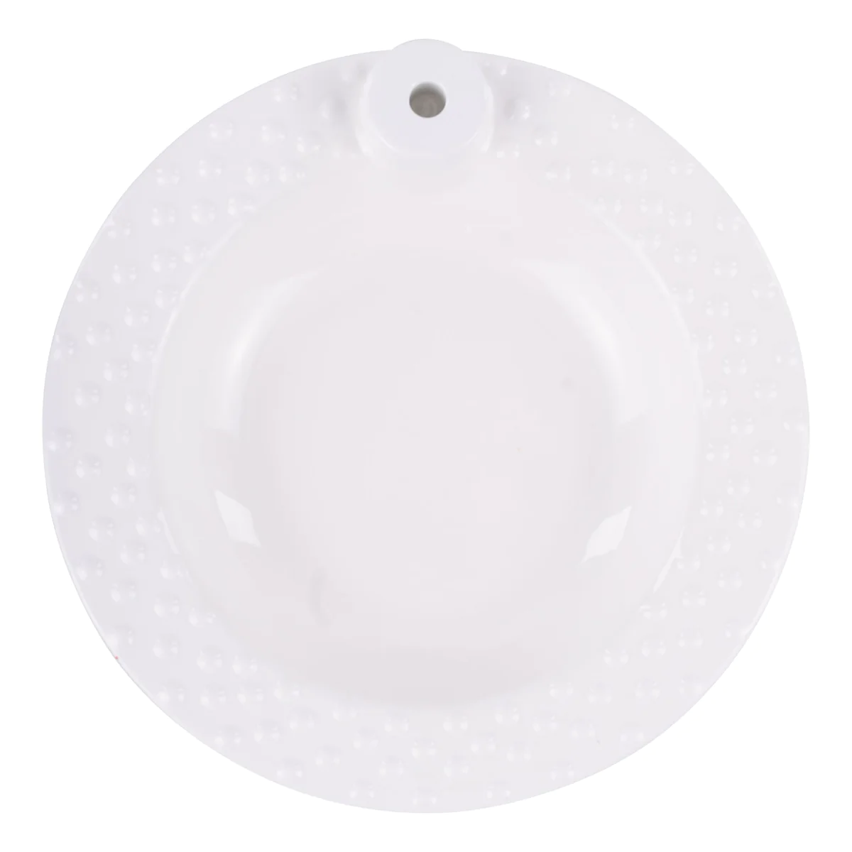 Looking for a unique serving bowl? Our white bowl with a peg for optional ornamental toppers (sold separately) is the best addition to your collection for any celebration. The pristine white bowl with a fashionable textured edge is perfectly adorned with any of our toppers which attach with a wooden peg. The ceramic toppers come in a variety of styles for many occasions, holidays, and celebrations.