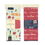 Art by WerkShoppe This reversible microfiber kitchen towel features a tossed pattern of wine, cheese, bread, olives, and more on one side while the other side boasts a rich wine-colored background adorned with illustrations of various wine varietals, celebrating the joys of culinary indulgence.